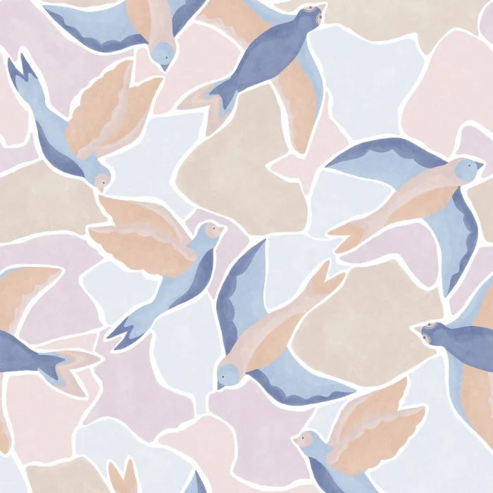 Panel Songerie je plný ptáků v příjemných odstínech barev.