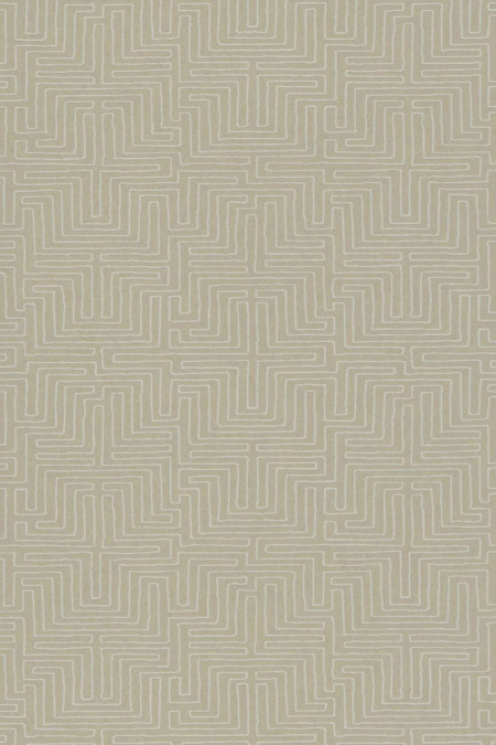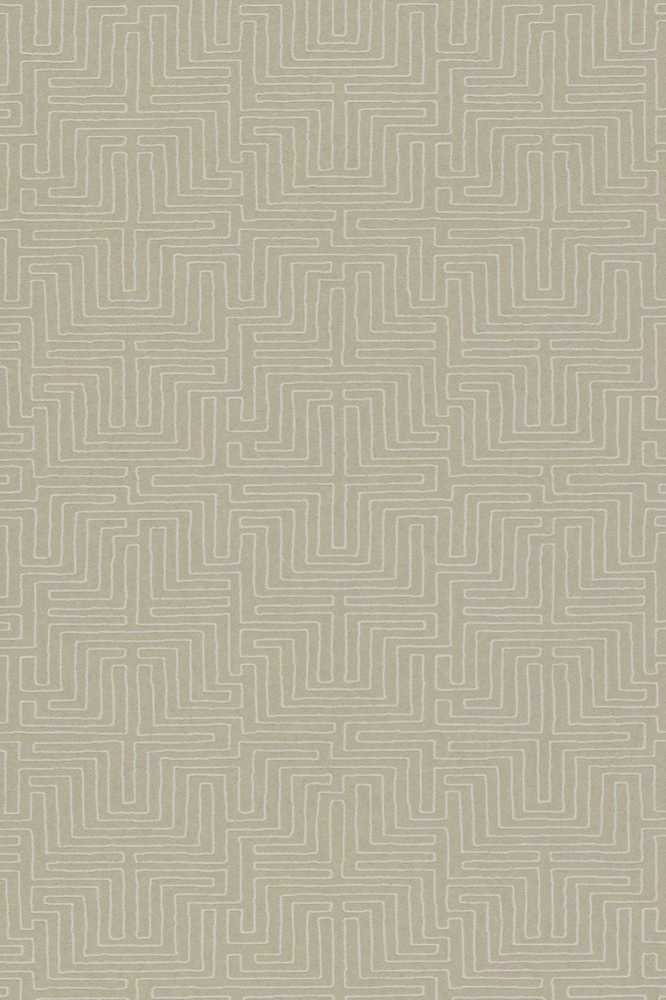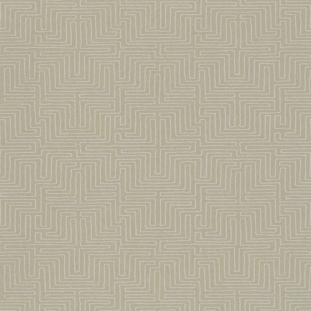 Elegantní béžová tapeta z kolekce inspirované afrikckým uměním. Tapeta je zdobená "bludištěm" v bílé barvě.
