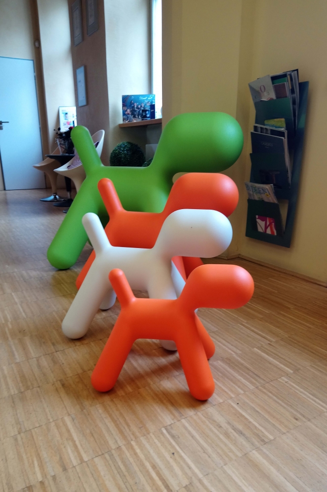 Štěně, které vytvořil Eero Aarnio, mistr skandinávské designové kultury a inovátor na mezinárodní scéně designu. Je to malý pejsek podle představ velkého designéra, jehož cílem bylo vidět dětskýma očima, jak se kreslí