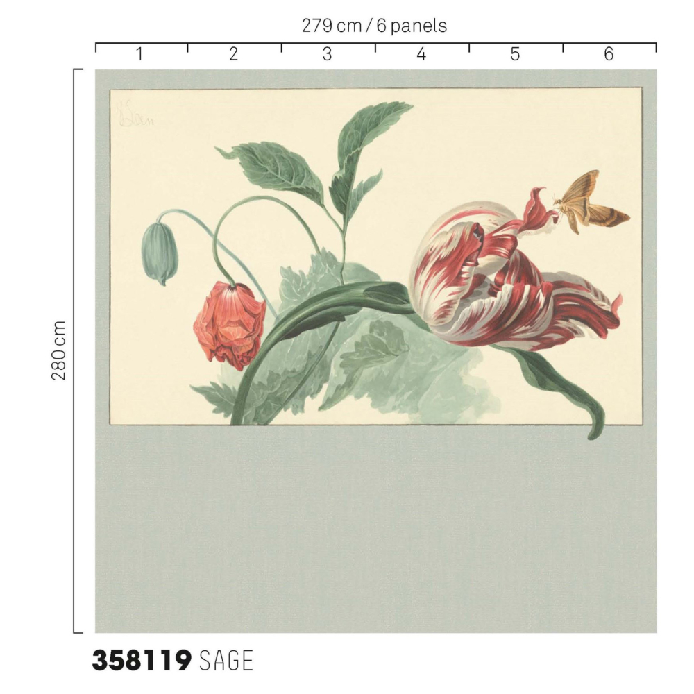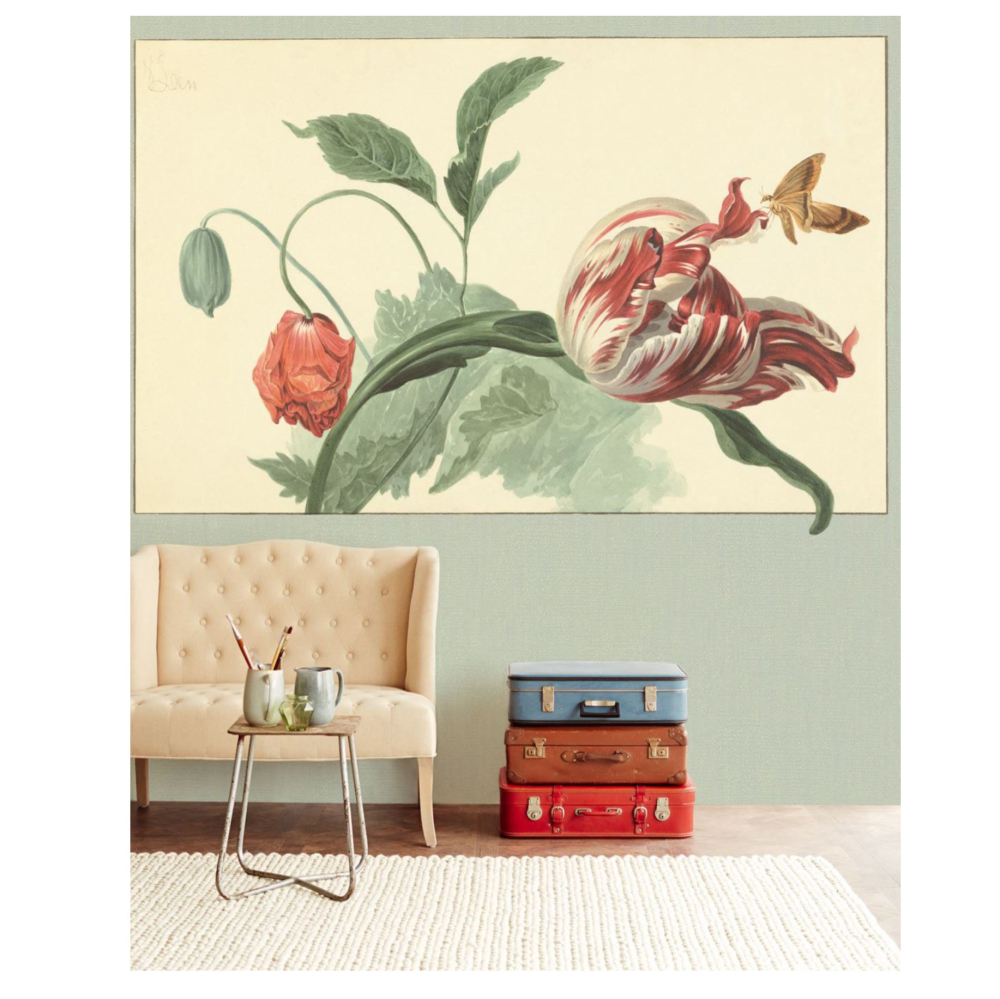 Nádherný panel inspirovaný starými mistry malíři. Panel je v podobě béžového obrazu s květinovým motivem na šalvějovém podkladu.