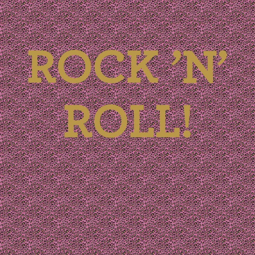 Panel se zvířecím potiskem a zlatým nápisem Rock ´n´roll!.