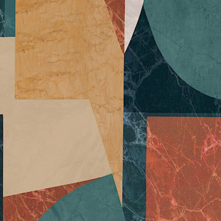 Palazzi je koláž geometrických kamenných tvarů. Architektonického efektu jsme dosáhli díky velikosti a kombinaci různých druhů kamene, jako je travertin a mramor. Stejně jako u minerální patiny mají některé kusy kamene v této tapetě leštěnější nebo matnější povrch.