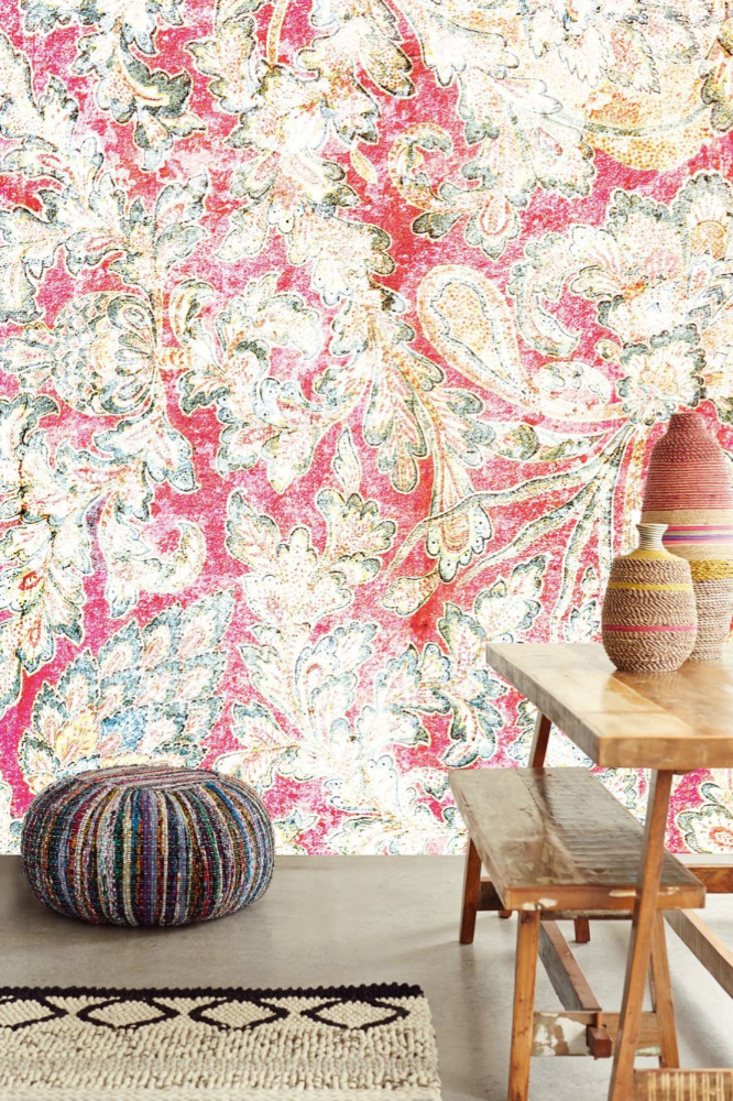 Nádherný panel s etno nádechem, který doslova hraje všemi barvami a florálními motyvi poskládanými z šupinek. Základní barvou je červená.