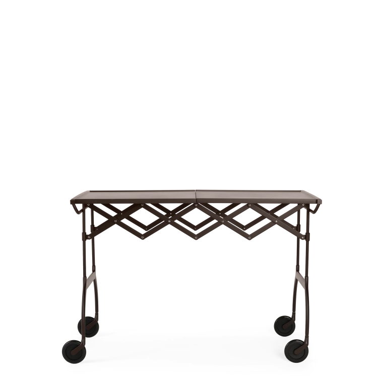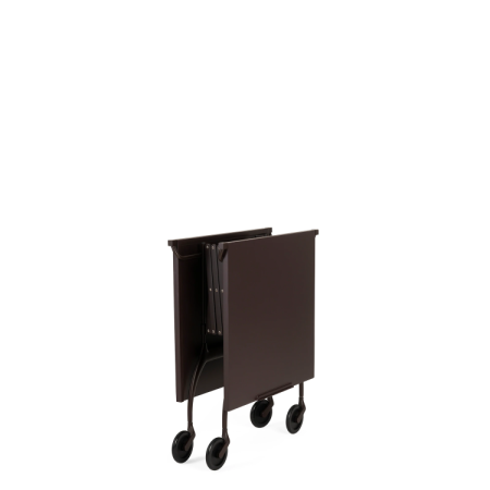 Pojízdný skládací stolek kombinuje plast s kovovými prvky. Lze jej využít v kuchyni jako odkládací stolek, jako barový stolek nebo také jako konferenční stůl.