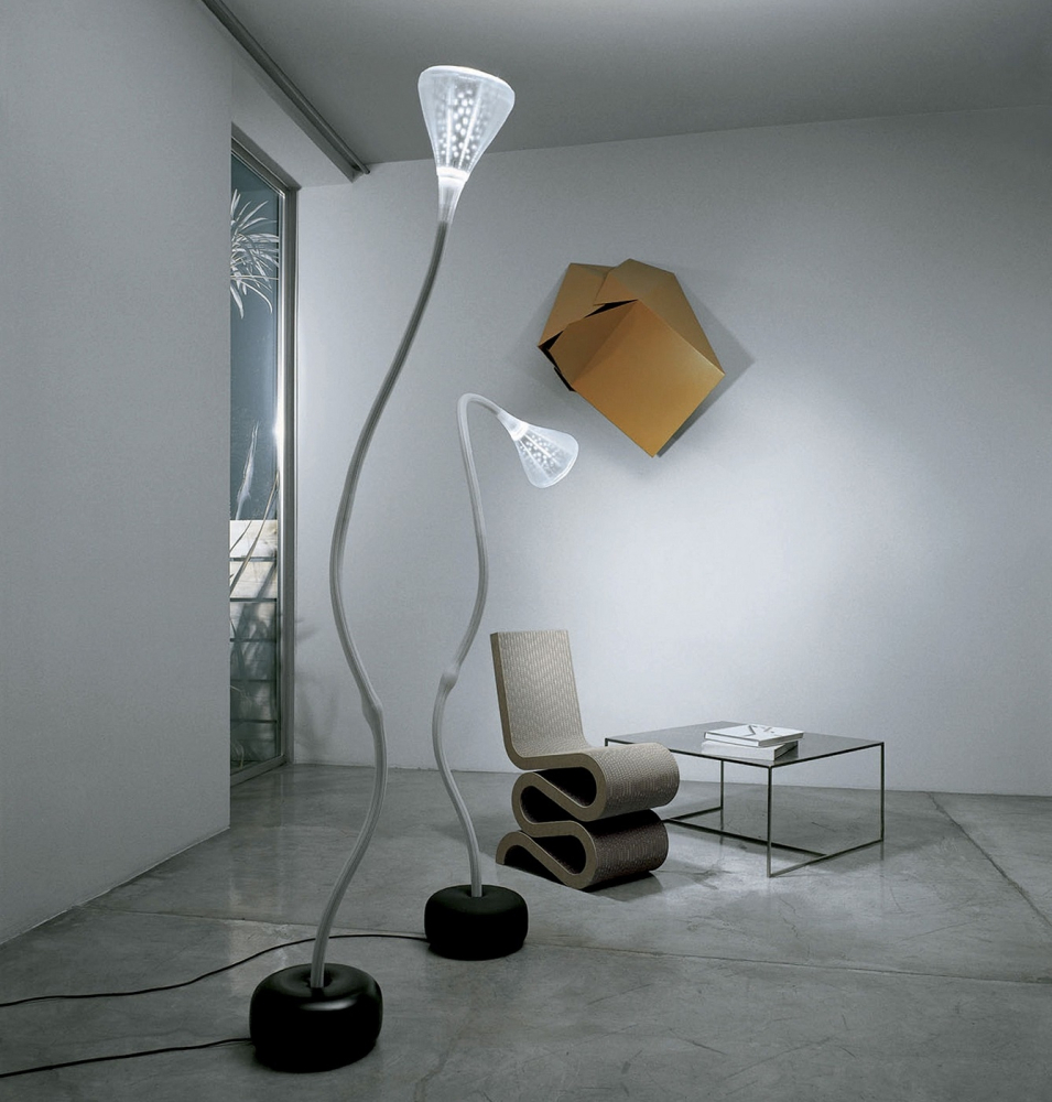 Inovativní technologie, materiály a manuální ovládání umožňuje nasměrovat světlo pomocí těla lampy, jehož spodní část je pevná a s horní lze směrovat dle potřeby. Stínidlo je kuželový perforovaný hliník, který soustřeďuje světlo, ale zároveň umožňuje, aby jemná rozptýlená záře vyzařovala ven a oživovala silikonový plášť stínidla. Lampu možno doplnit i o stropní a nástěnnou verzi.
