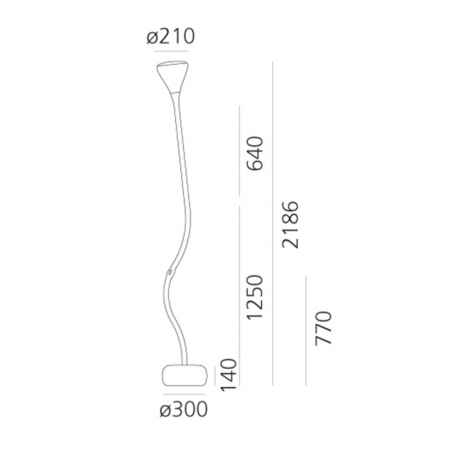 Rozměry: výška je velmi flexibilní max. 220 cm - výška pevné části 125cm, výška regulovatelné části 64 cm, Ø reflektoru 21 cm, Ø základny 30 cm, výška základny 14 cm, vypínač ve výšce 77 cm