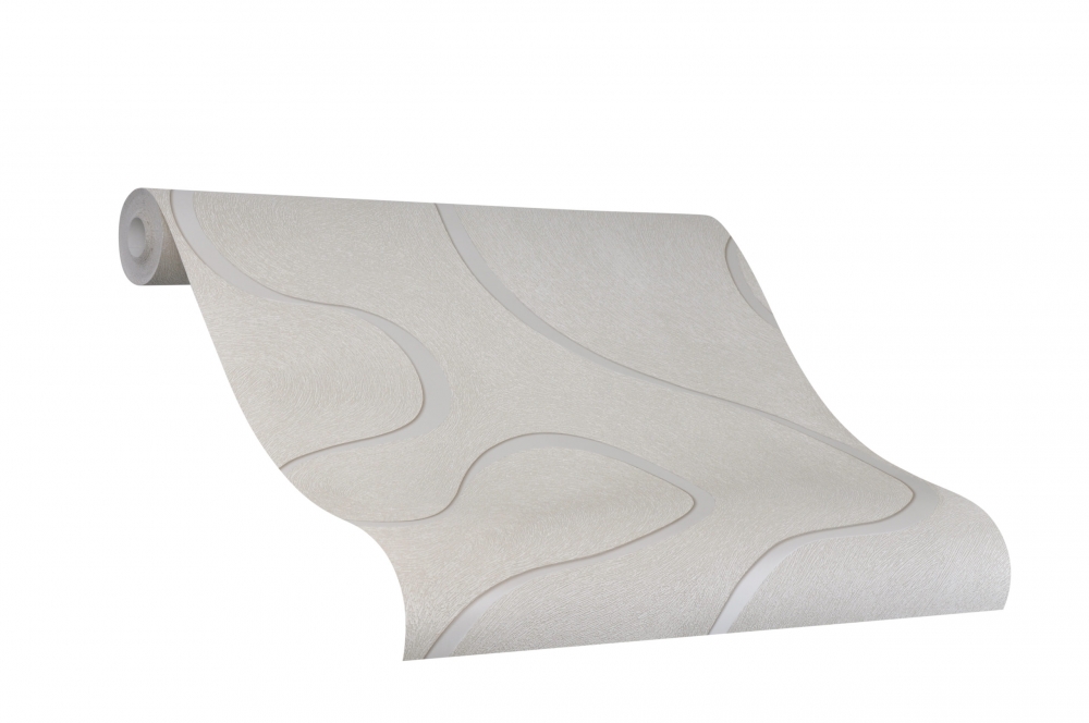 Efektní hrubá tapeta s reliéfem připomínajícím otisky prstů a zdobením připomínajícím bílou stuhu.