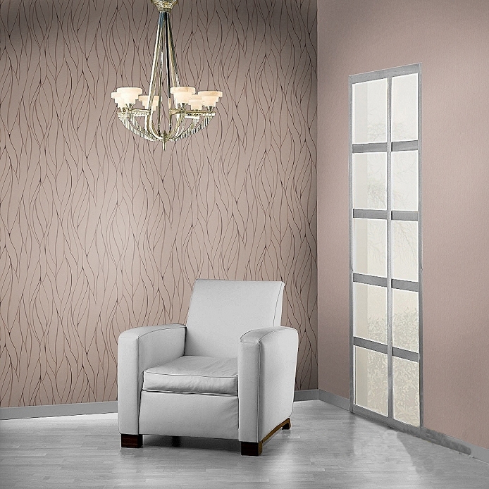 Béžová reliéfní tapeta. Reliéf vytváří na stěně vlnky.