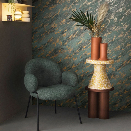 Jednobarevný celoplošný design tapety s granulovaným povrchem, který připomíná mramor.