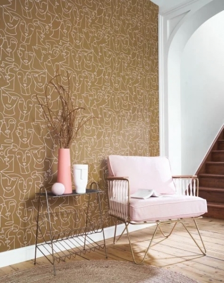 Vzor Portrait je plný stylizovaných tváří, které jsou nakresleny jednou čarou. Motiv je vytvořen technikou vystupujícího inkoustu, který na tapetě vytváří reliéf.