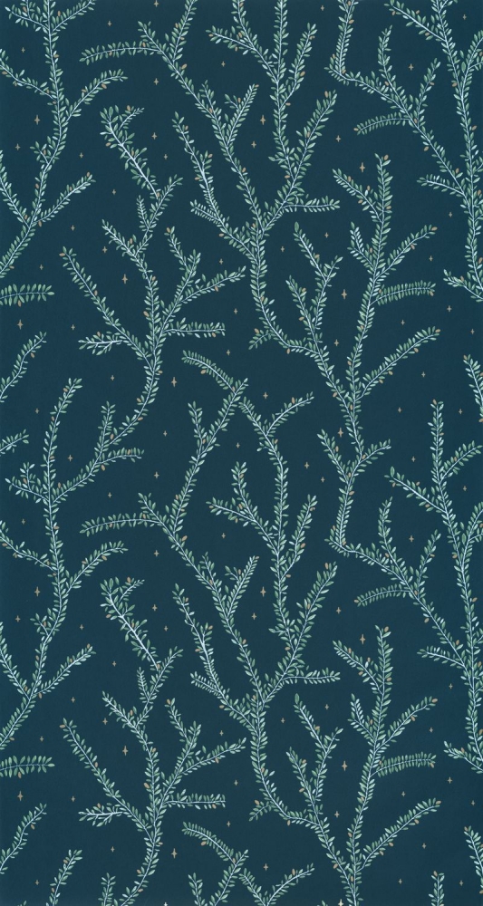 Tapeta Little Woods je plná větví s drobným listím a jemným zlatým zdobením.