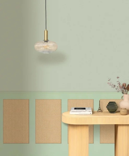 Jednoduchá jednobarevná tapeta v imitaci lnu je ideální k doplnění výrazných panelů.