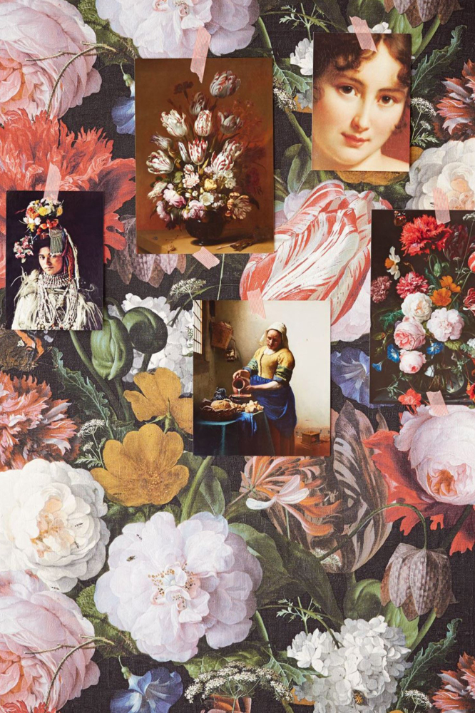 Nádherná květinová tapeta inspirovaná starými mistry malíři. I povrch tapety vypadá jako malířské plátno.