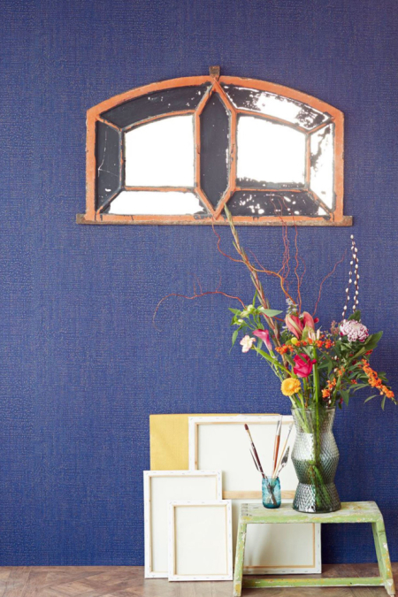 Nádherná tmavě modrá tapeta se zlatými skvrnkami inspirovaná starými mistry malíři. I povrch tapety vypadá jako malířské plátno.