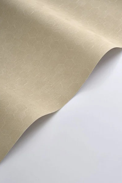 Jako včelí plástev - dokonalé šestiúhelníkové struktury - vzor Meli vesele bzučí na stěnách. Designu zdůrazňuje čistotu.