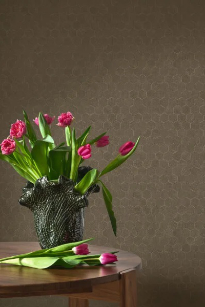 Jako včelí plástev - dokonalé šestiúhelníkové struktury - vzor Meli vesele bzučí na stěnách. Designu zdůrazňuje čistotu.