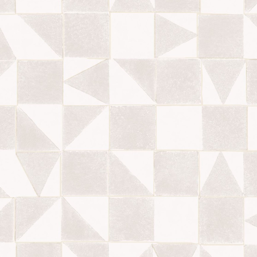 tapeta s jemným geometrickým vzorem a jemným metalickým leskem ve spárách geometrických tvarů.
