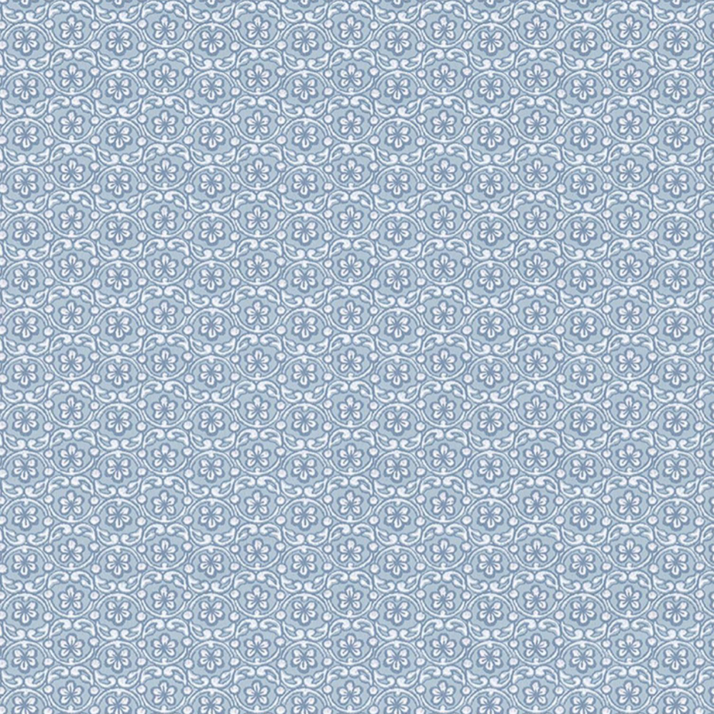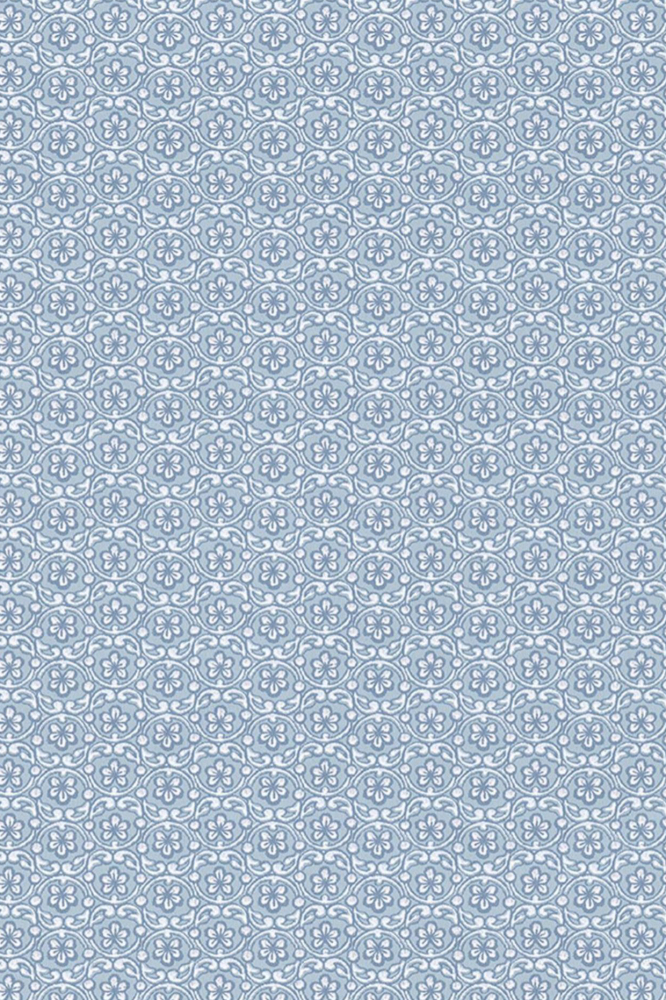 Další řada oblíbených tapet z kolekce Pip. Tato tapeta má drobný květinový vzor v bílé barvě na světle modrém podkladu. Vzor jemně vystupuje z tapety.