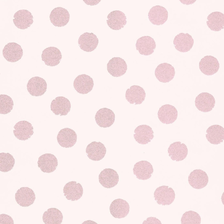 Hladká tapeta plná růžových puntíků se třpytkami.
