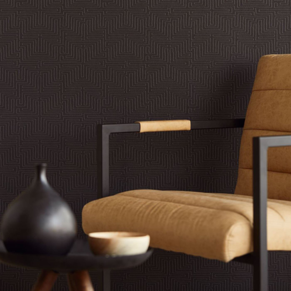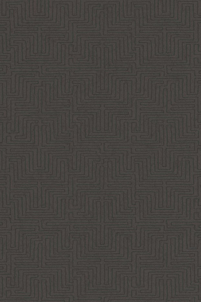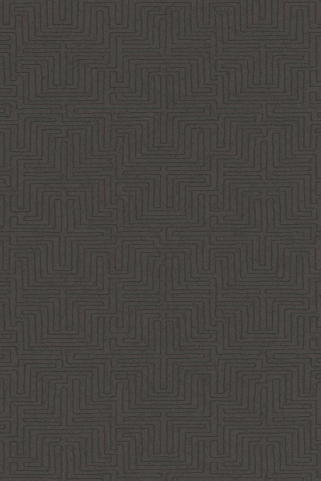 Elegantní hnědá tapeta z kolekce inspirované afrikckým uměním. Tapeta je zdobená "bludištěm" v černé barvě.