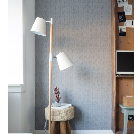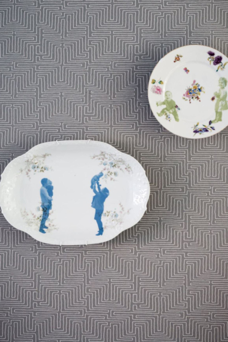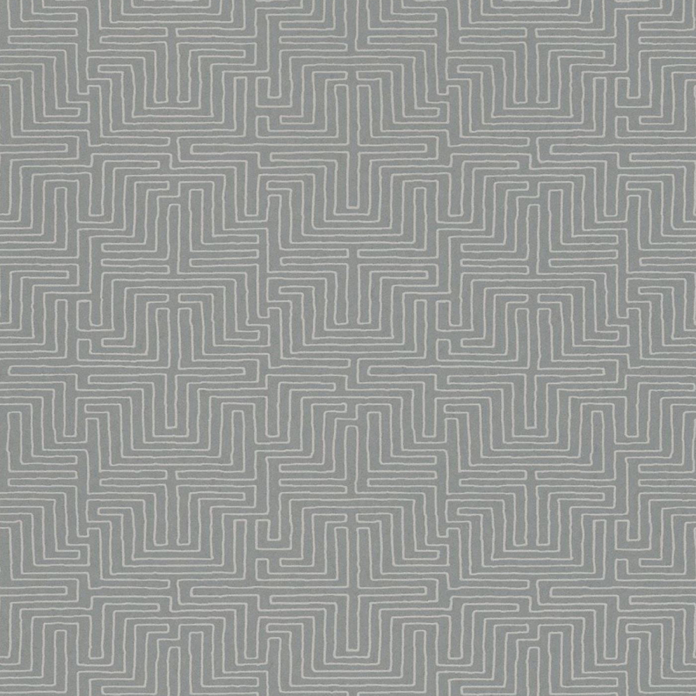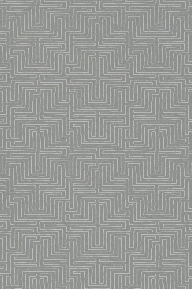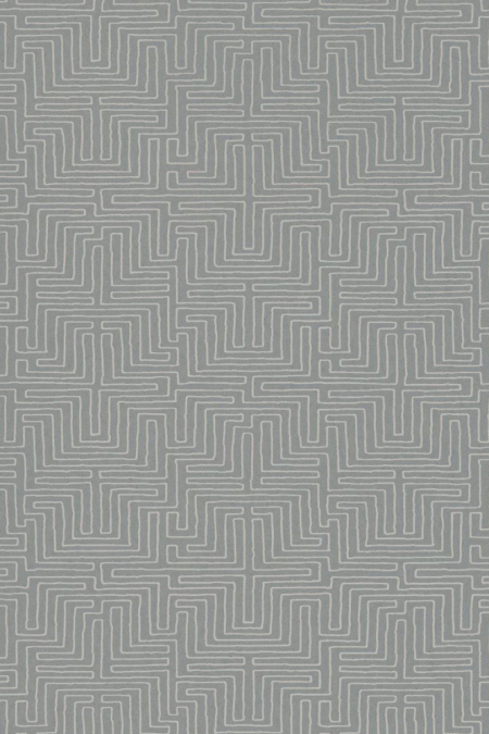 Elegantní šedá tapeta z kolekce inspirované afrikckým uměním. Tapeta je zdobená "bludištěm" v bílé barvě.