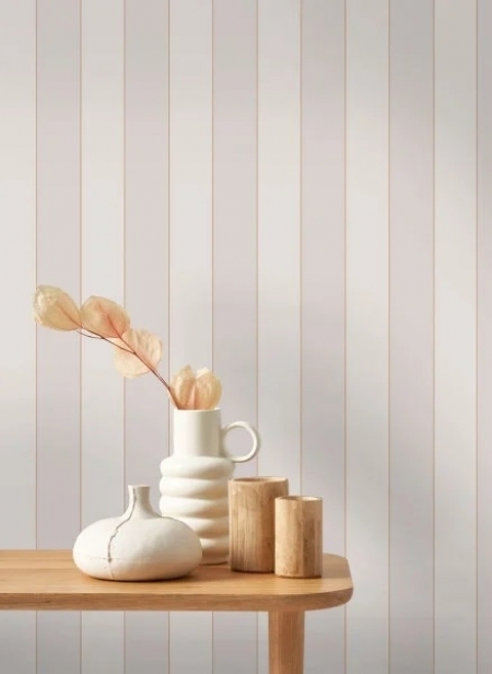 Decentní pruhovaná tapeta se zlatou konturou.