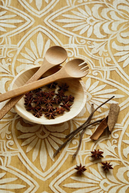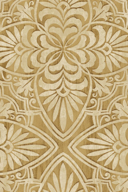 Krásná tapeta s etno nádechem. Žlutá barva je nakombinována s krémovým florálním ornamentem.