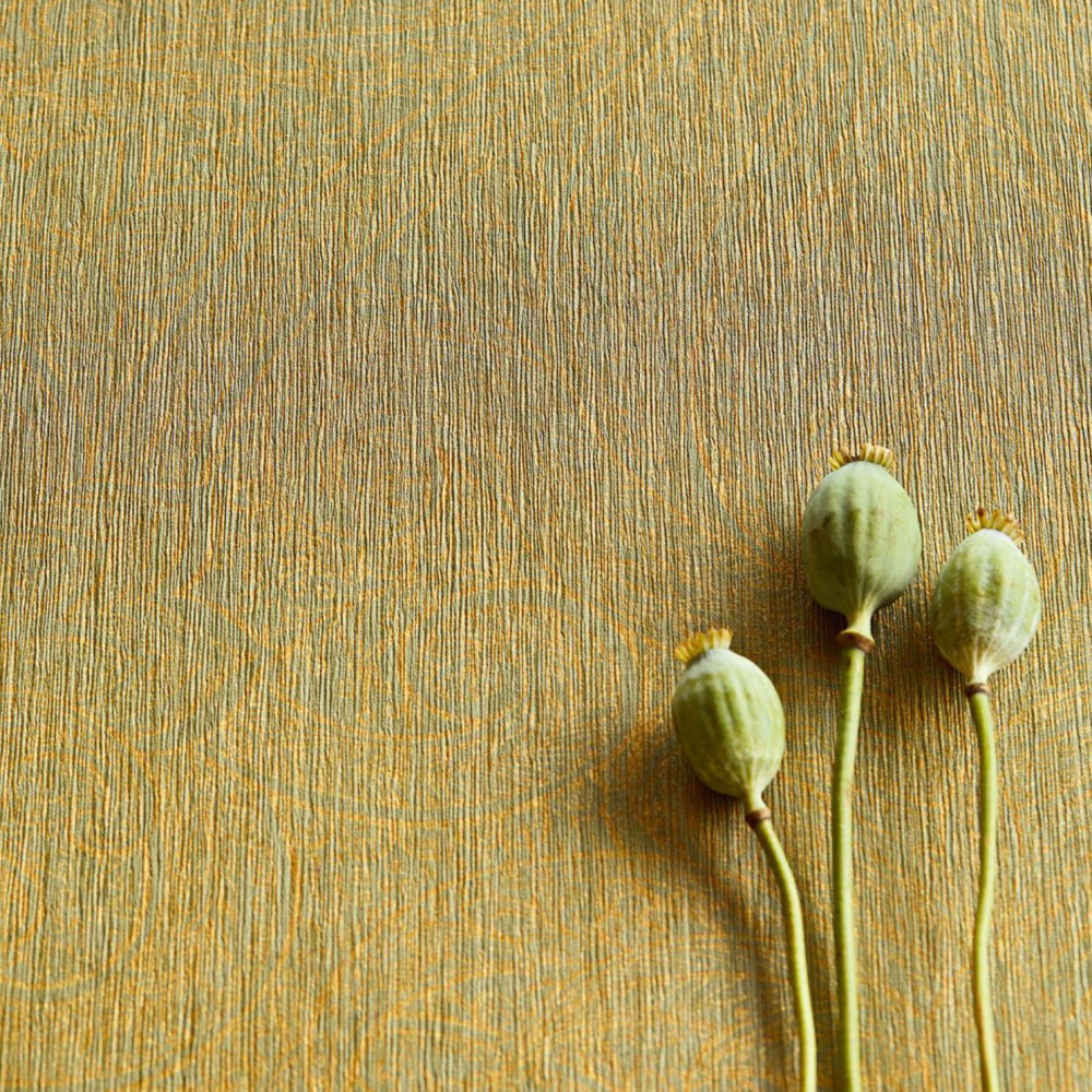 Krásná tapeta s etno nádechem. zelená barva je nakombinována se zlatým a žlutým florálním ornamentem.