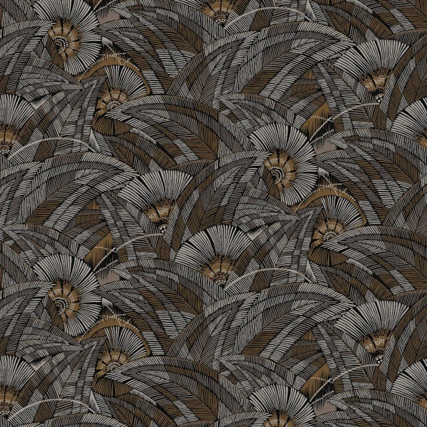 Tapeta s hladkým povrchem na níž jsou vytvořeny obrazce připomínající listy a květy. Tyto obrazce lehce vystupují z tapety a jsou v odstínech stříbrné a okrové barvy.