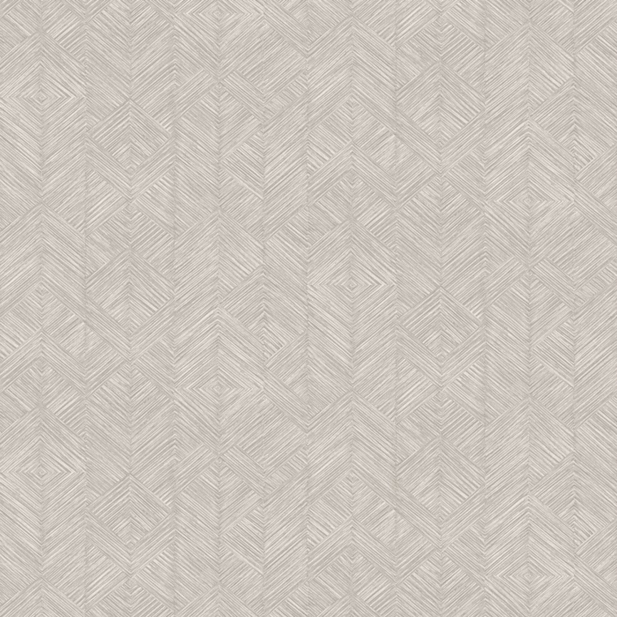 Tapeta s hladkým povrchem na níž jsou poskládány geometrické obrazce. Tyto obrazce lehce vystupují z tapety a jsou v odstínech šedé a bílé barvy.