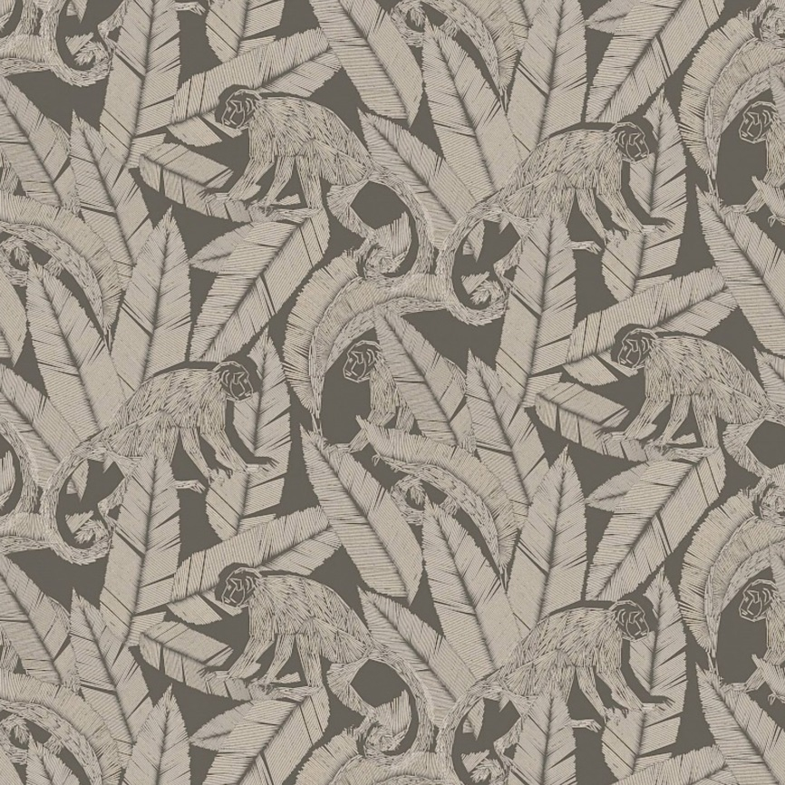 Tapeta s hladkým povrchem na níž jsou poskládány obrazce v podobě opic a listů. Tyto obrazce vypadají jako by je na tapetu někdo vyskládal pomocí dřívek.