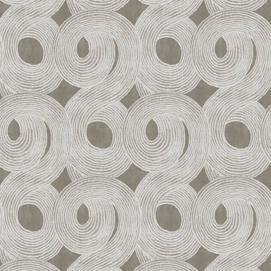 Tapeta s hladkým povrchem na níž jsou vytvořeny kruhové obrazce. Tyto obrazce lehce vystupují z tapety a jsou v šedé a bílé barvě.