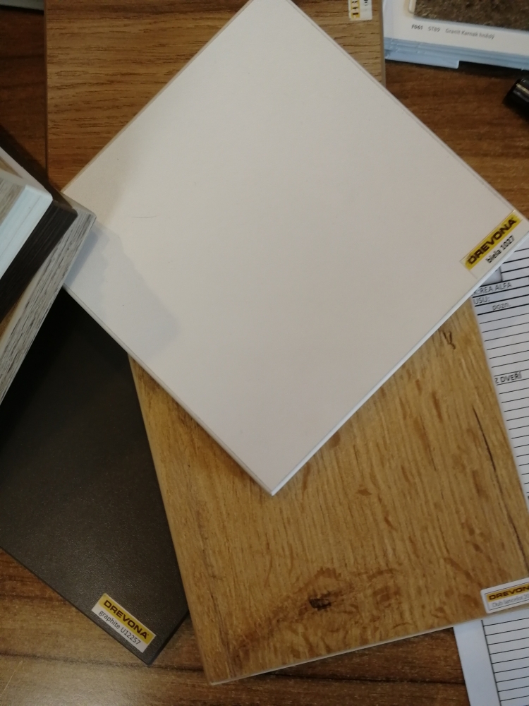 Dobrý den, moc prosím o pomoc s výběrem dveří a podlahy. Postavili jsme domeček a nyní potřebujeme vybrat podlahu, která by byla stejná do chodby, obývacího pokoje a kuchyně. V příloze zasílám půdorys domu. Okna jsou z venku domu antracitová, ale uvnitř je vše bílé, takže univerzální :-) Obývací pokoj a kuchyň dělí dvoukřídlé dveře do pouzdra. Kuchyňská linka je bílá v lesku s šedou deskou a skříňky jsou v dekoru dub halifax. Z tohoto dubu bych také chtěla nechat dodělat skříňku pod umyvadlo do koupelny a případně i stůl do kuchyně a obývacího pokoje, aby to místnosti zahřálo, propojilo. Bohužel Masonite,od kterých si máme dveře kupovat, v tomto dekoru dveře nevyrábí. Na první pohled se nám zalíbil dekor dveří Nebraska - zasílám v příloze (ve skutečnosti je více do šeda než na obrázku a ani ty pruhy mi nepřišly tak výrazné), podlahu bychom k tomuto také chtěli do světle šedé, např. beton teple šedý od Quick stepu, ale mám strach, že to bude dost chladné. Mám strach k těmto dveřím zvolit podlahu s dřevěným dekorem,aby to nebylo přeplácané, ale možná by to bylo vhodnější. Pak jsme přemýšleli ještě na bílými dveřmi a třeba výraznější podlahou se vzorem grey nomad wood. Prosím moc o radu, jelikož jsme s manželem absolutně v koncích a mám pocit, že čím déle to řešíme, tím skáčeme z extrému do extrému :-) Předem moc děkuji.